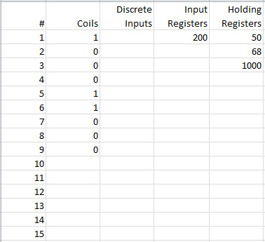 Modbus slave devices tin can be visualized as having an internal spread sheet filled with numbers. The Modbus chief will enquire a slave for its data value or number found in a given row and cavalcade, and the slave will respond by sending that piece of data back to the chief. Of class, this process tin exist reversed with the Modbus master telling the slave what number to put into its data tabular array at a given row and column.
